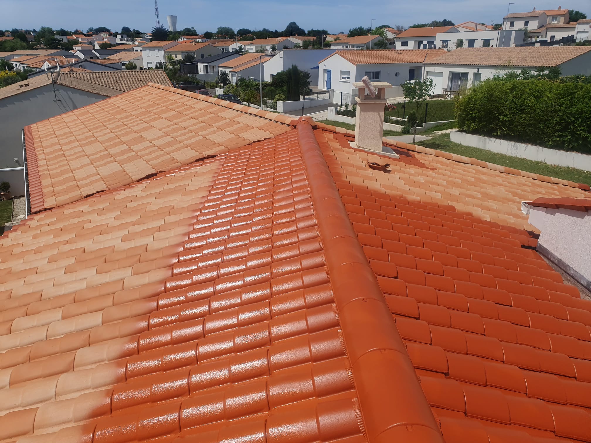 L’entretien de toiture est souvent négligé, alors qu’il est déterminant pour sa durabilité. Notre équipe réalise un nettoyage en profondeur de votre toit, éliminant mousses, lichens, champignons et saletés accumulées. Cette étape est suivie d’un traitement hydrofuge professionnel, qui imperméabilise les matériaux tout en laissant respirer la structure. Résultat : votre toiture est protégée durablement contre l’humidité, les infiltrations et les dégradations liées aux intempéries typiques de la région Nouvelle-Aquitaine.