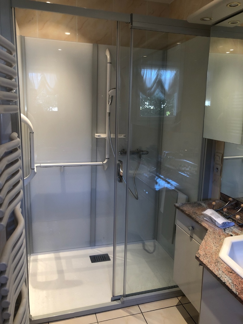 • Les équipements PMR (personnes à mobilité réduite), comme les barres d’appui, receveurs extra-plats, sièges de douche ou lavabos ergonomiques. Nous vous aidons à adapter votre salle de bain tout en conservant un haut niveau de confort et de style.